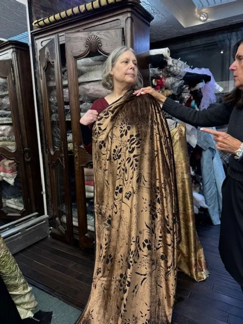 After a bit of back and forth the client found this cut silk velvet with a Venetian feeling that she loved. I met her at a store I had not been familiar with, though it has existed on the lower east side since 1890!
